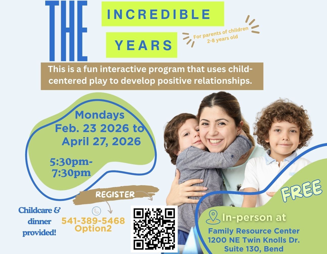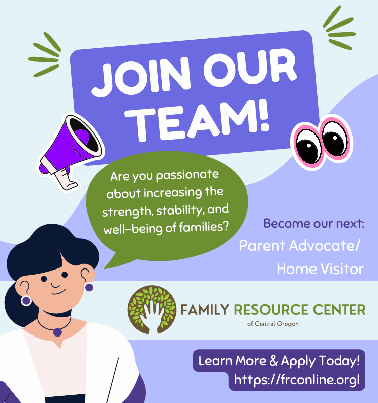 Family Resource Center supports parents in their most important role of parenting. We provide educational classes and workshops, support groups, and family fun activities. In addition, we are the Central Oregon Hub for the Oregon Parenting Education Collaborative and support the Central Oregon Kids Safe Coalition by providing car seat clinics and trainings.