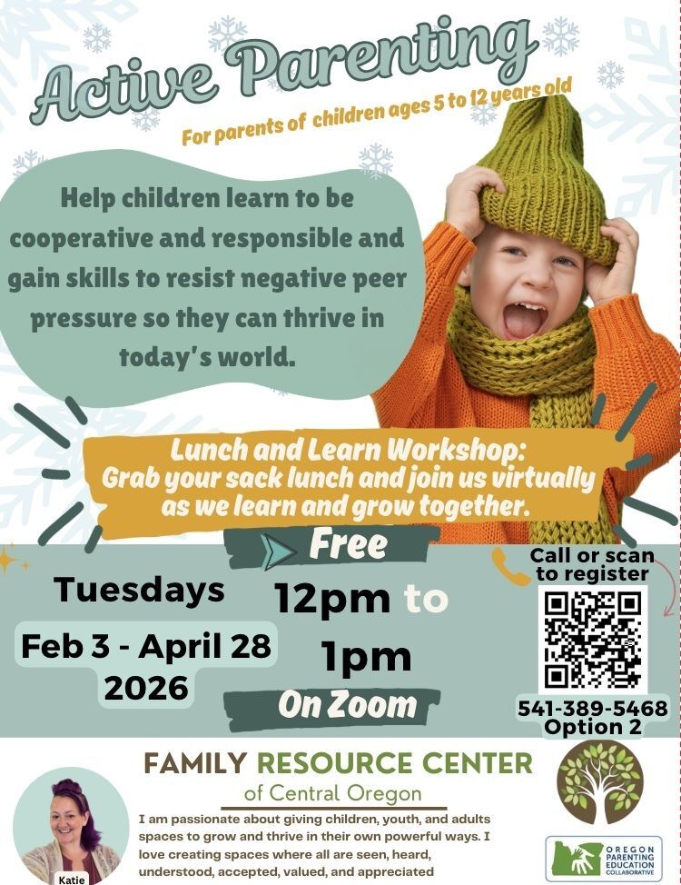 Family Resource Center of Central Oregon offers free parenting education classes and workshops in Deschutes, Crook, and Jefferson Counties. We partner with schools, early education, and other community programs to offer various locations and programs to meet families' needs. Offerings change frequently, so give us a call or browse the calendar for the latest! Class examples include the following.