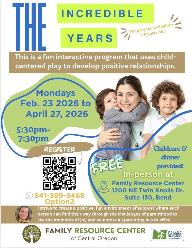 Family Resource Center of Central Oregon offers free parenting education classes and workshops in Deschutes, Crook, and Jefferson Counties. We partner with schools, early education, and other community programs to offer various locations and programs to meet families' needs. Offerings change frequently, so give us a call or browse the calendar for the latest! Class examples include the following.
