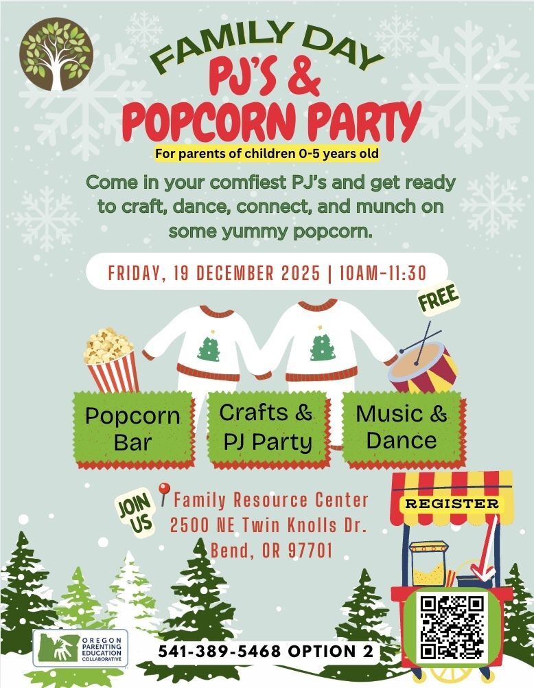 Join us for a cozy, fun-filled Family Day - PJ’s & Popcorn Party, a FREE event for parents and little ones ages 0–5! It’s the perfect chance to slow down, play, and enjoy some warm holiday-season fun together. We can’t wait to see you there!
